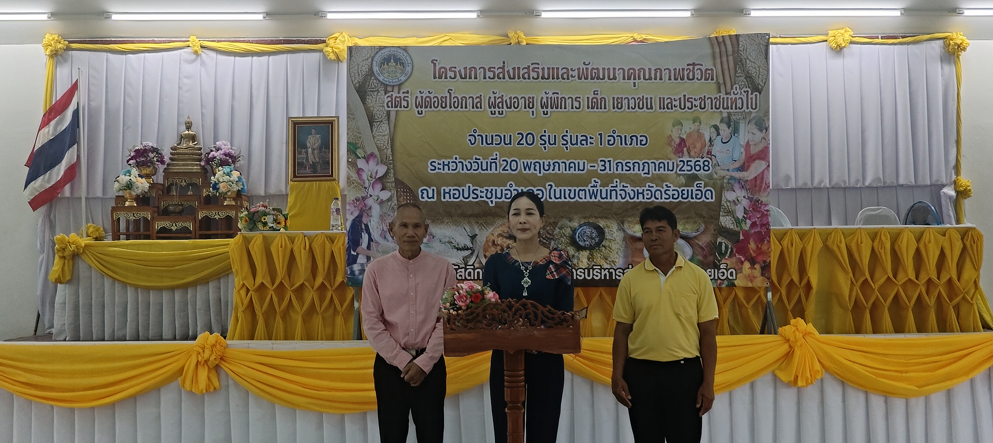 วันที่ 10 มิถุนายน 2568 ณ ห้องประชุมอำเภอจตุรพักตรพิมาน ตำบลหัวช้าง อำเภอจตุรพักตรพิมาน จังหวัดร้อยเอ็ด กองสวัสดิการสังคม องค์การบริหารส่วนจังหวัดร้อยเอ็ด จัดฝึกอบรมโครงการส่งเสริมและพัฒนาคุณภาพชีวิต สตรี ผู้ด้อยโอกาส ผู้สูงอายุ ผู้พิการ เด็ก เยาวชน และประชาชนทั่วไป หลักสูตร “การทำปลาทูหมัก ปลาทูมัน น้ำพริกตาแดงแมงดานา” - นายเศกสิทธิ์ ไวนิยมพงศ์ นายกองค์การบริหารส่วนจังหวัดร้อยเอ็ด มอบหมายให้ นางนราภรณ์ ไวนิยมพงศ์ สมาชิกสภาองค์การบริหารส่วนจังหวัดร้อยเอ็ด เป็นประธานในพิธีเปิดโครงการส่งเสริมและพัฒนาคุณภาพชีวิต สตรี ผู้ด้อยโอกาส ผู้สูงอายุ ผู้พิการ เด็ก เยาวชนและประชาชนทั่วไป หลักสูตร “การทำปลาทูหมัก ปลาทูมัน น้ำพริกตาแดงแมงดานา” - นางคำกอง ปามา หัวหน้าฝ่ายส่งเสริมสวัสดิการสังคม รักษาราชการแทน ผู้อำนวยการกองสวัสดิการสังคมกล่าวรายงานวัตถุประสงค์ของการจัดฝึกอบรมโครงการดังกล่าว - นายคำสี สืบเมืองซ้าย สมาชิกสภาองค์การบริหารส่วนจังหวัดร้อยเอ็ด เขตอำเภอจตุรพักตรพิมาน - นางละอองเพชร พุฒิพัฒน์พานิช นายอำเภอจตุรพักตรพิมาน และบุคลากรกองสวัสดิการสังคม เข้าร่วมพิธีเปิดฯ โดยมีวัตถุประสงค์ เพื่อเป็นการฝึกอบรม สตรี ผู้ด้อยโอกาส ผู้สูงอายุ ผู้พิการ เด็ก เยาวชน และประชาชนทั่วไป ในพื้นที่จังหวัดร้อยเอ็ด ให้มีความรู้ประสบการณ์ด้านอาชีพ ให้เกิดการเรียนรู้ และเกิดทักษะ จากการฝึกอบรมทักษะอาชีพ ใช้เวลาว่างให้เกิดประโยชน์ ส่งเสริมการเกิดการรวมกลุ่มให้เกิดการเรียนรู้ และสามารถนำความรู้จากการฝึกทักษะอาชีพไปสร้างงานเพิ่มรายได้ให้แก่ตนเองและครอบครัว ผู้เข้ารับการฝึกอบรมตามโครงการประกอบด้วย สตรี ผู้ด้อยโอกาส ผู้สูงอายุ ผู้พิการ เด็ก เยาวชน และประชาชนทั่วไปในเขตพื้นที่จังหวัดร้อยเอ็ด จำนวน 50 คน